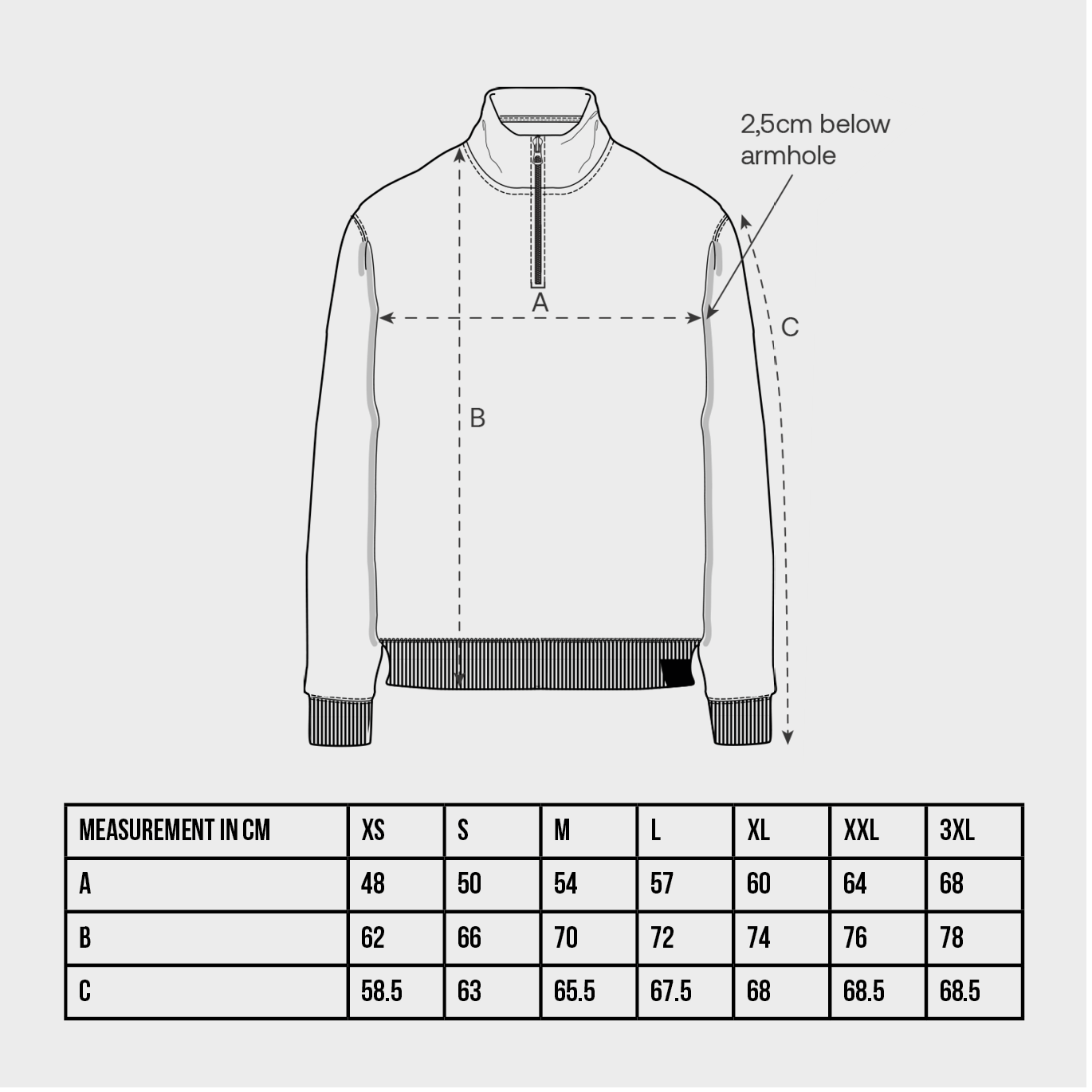 Elevated and understated, this quarter-zip is designed with a sleek mock neck and minimalist lines for everyday wear. Crafted with subtle detailing—ribbed cuffs and hem for structure, clean double-needle topstitching for durability, and refined herringbone tape along the interior for a touch of finish. A self-fabric half-moon at the back neck completes the look with quiet sophistication.